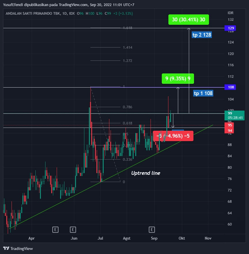 Pagi ini $SMDM menjadi salah satu top gainer dengan menguat 20%. Ada sebuah saham satu sektor dengan SMDM yang berpotensi menyusul SMDM dengan target terdekat 108 dan target lanjutan di 128. Stoploss saat ini di 94, bisa dinaikan apabila harga naik ke TP.
