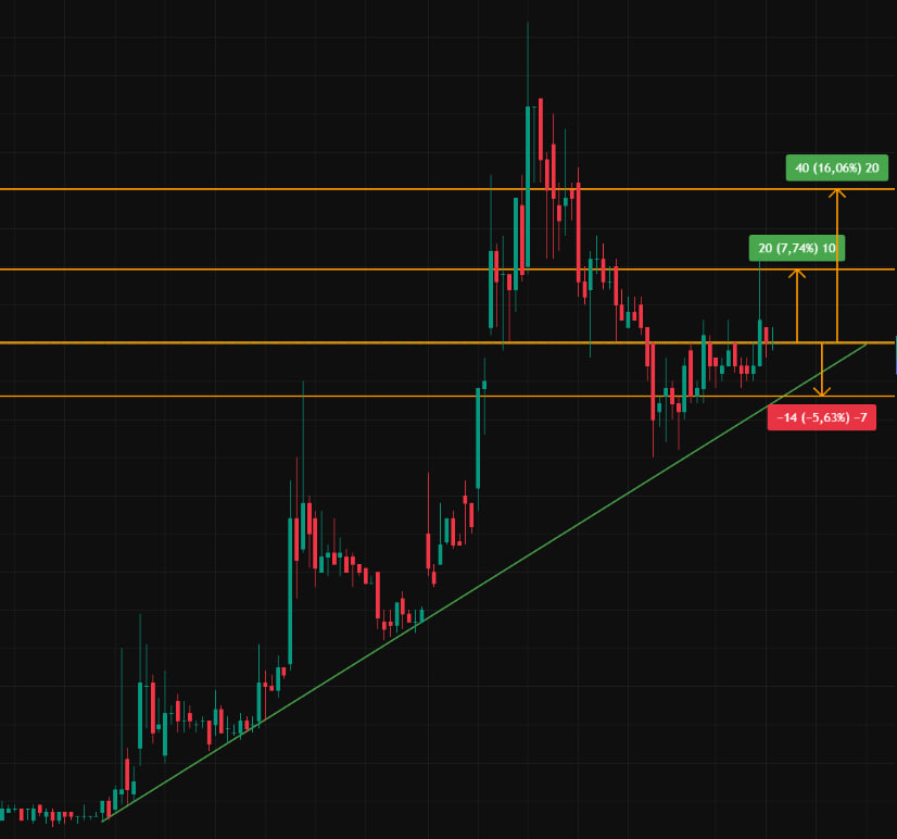 Ini adalah salah satu saham yang paling menarik untuk ditradingkan minggu ini. Karena saham ini berhasil breakout dan tutup di atas resistnya. Saham ini berpotensi melanjutkan kenaikan dengan target 7% sampai dengan 16%. Menariknya risk dapat dibatasi secara teknikal di 5%.