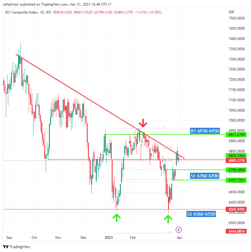 Minggu ini kami prediksi IHSG bergerak cenderung konsolidasi dengan kecenderungan turun menutup support gap 6758 sampai dengan 6707.