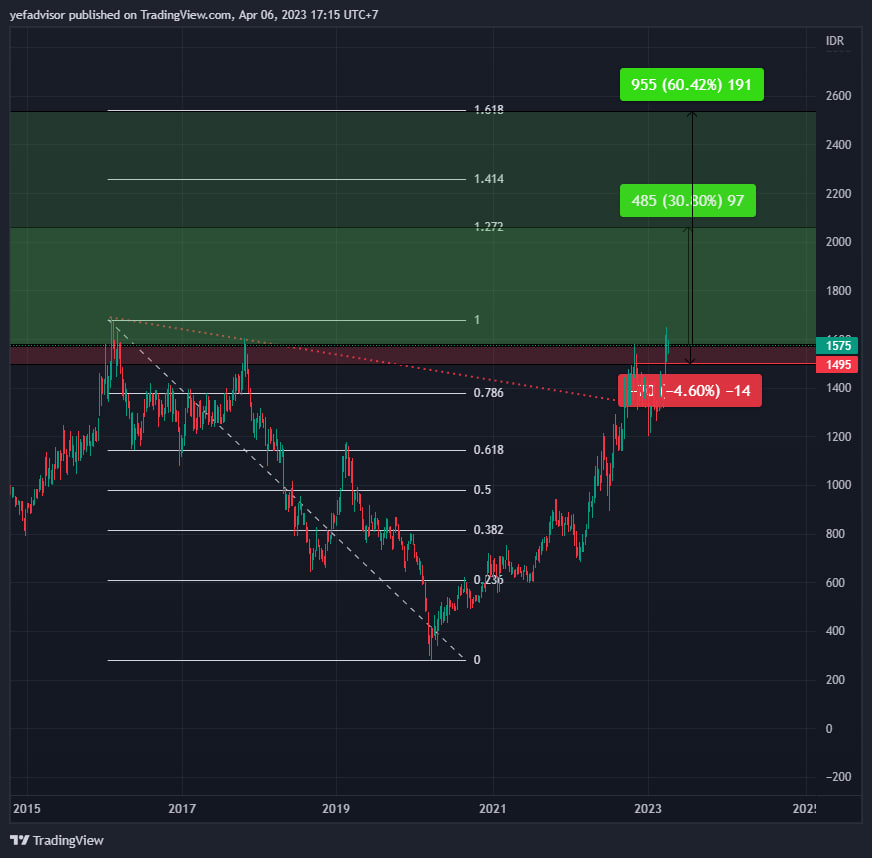 Ini adalah saham paling menarik ditradingkan minggu ini. Baru saja terkonfirmasi breakout dari resist kuat dan berpotensi lanjutkan uptrend dengan upside minimal 30% hingga 60%. Menariknya risk bisa dibatasi kurang dari 5%.