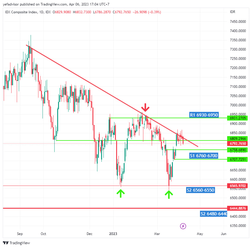 Minggu ini kami prediksi IHSG masih berpotensi turun menutup support gap area 6700an dan dapat berlanjut hingga kebawah 6600. Penurunan akan didorong oleh take profit menjelang libur panjang lebaran.